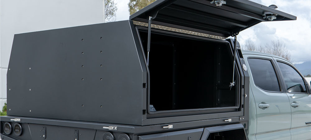 Gas strut-assisted operation keeps the doors securely open while you work, and the wide access point is ideal for larger items, modular storage setups, or mounted accessories. From recovery gear to full camp kitchens, everything stays within easy reach without having to climb into the bed.