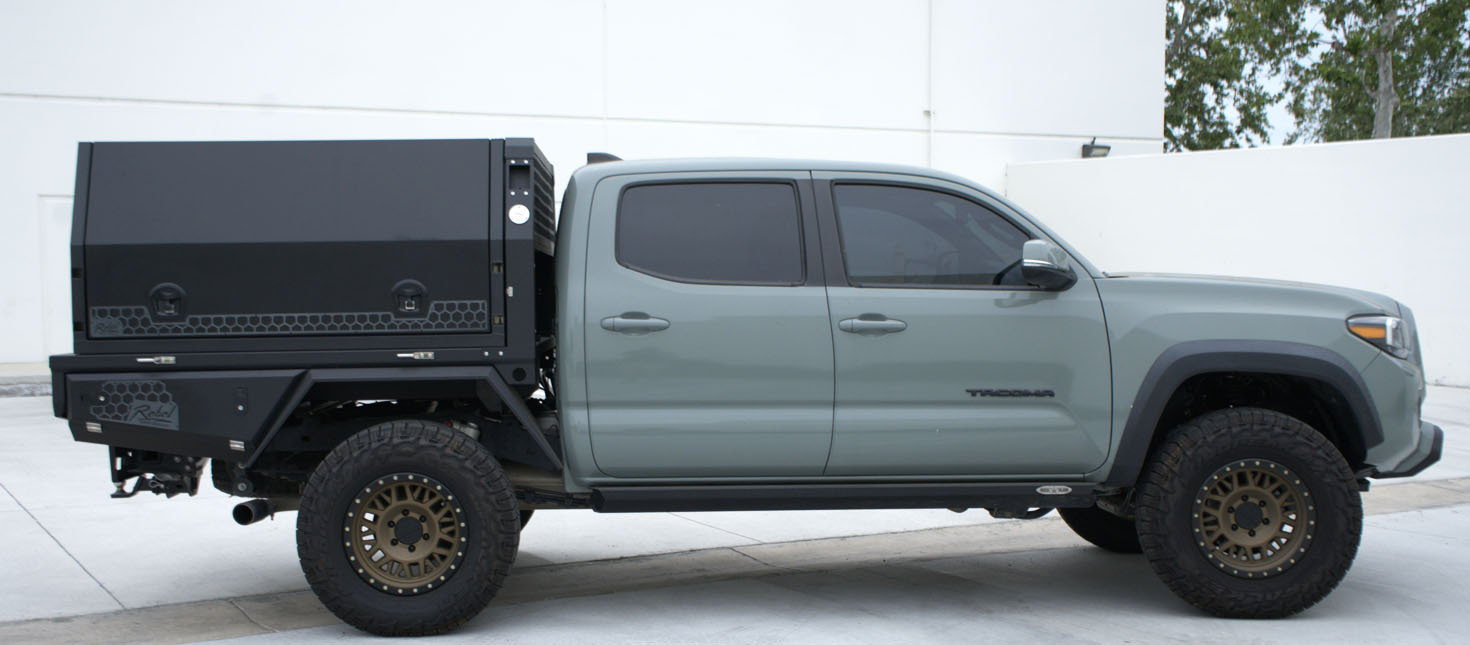 Welcome to the next level of overlanding. The Rebel Off Road Flatbed Tray & Canopy system for the 2nd Gen (2016–2023) Toyota Tacoma is engineered to transform your truck into a truly capable daily driver, camp rig, overland platform, or work vehicle with tons of storage for a custom modular build out.