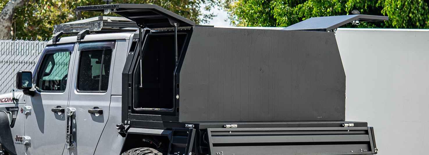 Push the limits of your Jeep Gladiator or Tacoma with the Rebel Off Road Bobbed Flatbed Tray, designed for the extreme off roader, overlander, and adventurers who demand the most from their vehicle.