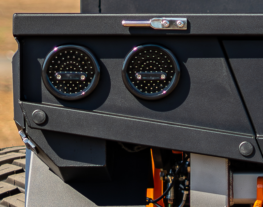 Protection for your cab with a built-in water tank (11 gallons) and side light cutouts. - Heavy Duty Hitch with Recovery points & Camera mount: