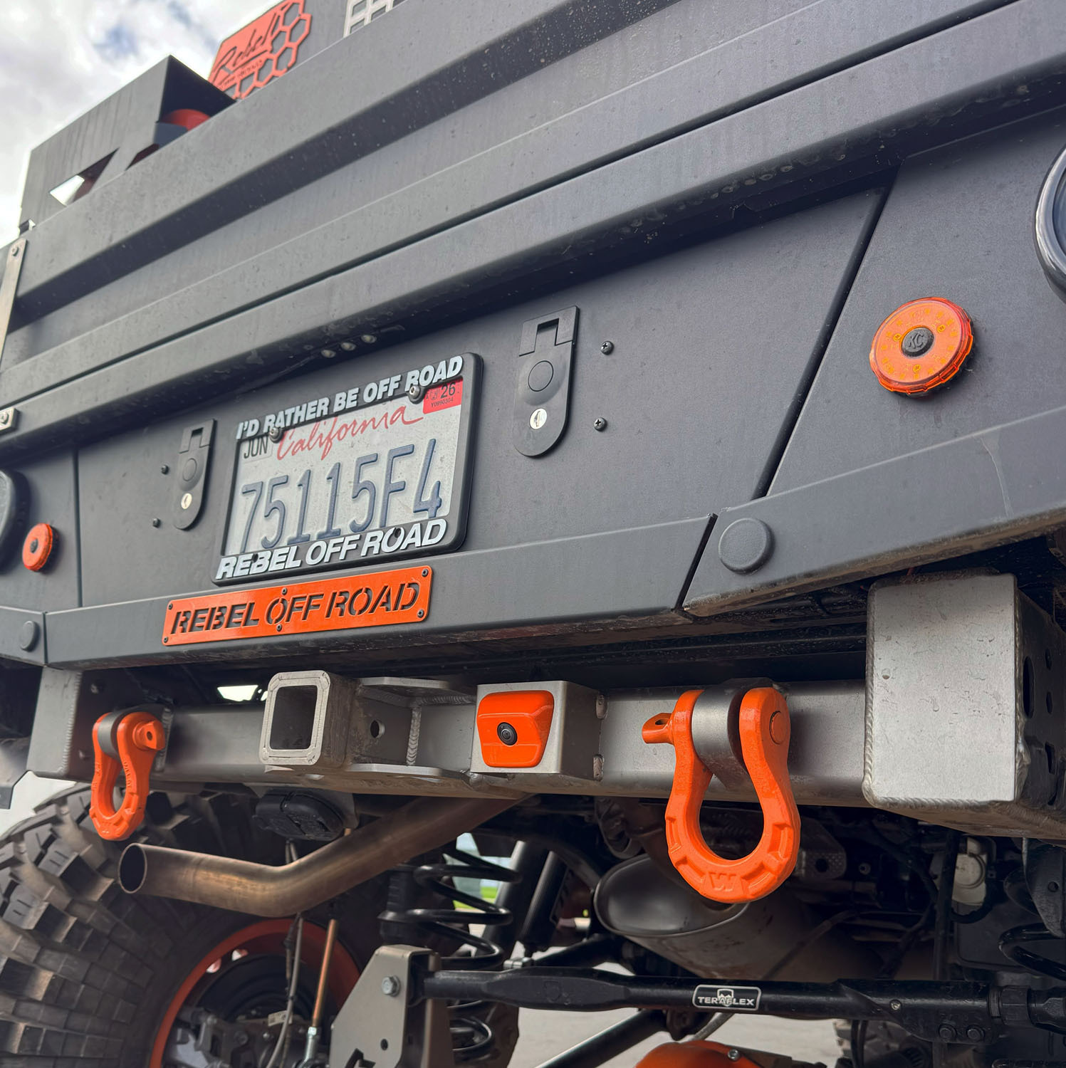 Included 2" hitch receiver with provisions for your factory backup camera & 2 heavy duty shackle tabs integrated for quick recovery (shackles sold separately). - LED Tail Lights:
